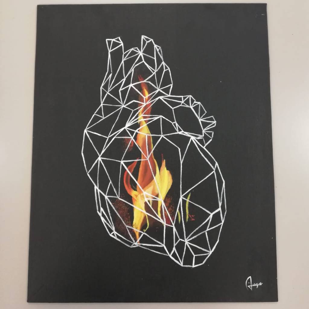 En tercer semestre llevé una clase de pintura, la amé. Hice un plato con un colibrí y es uno de los trabajos de los que más orgulloso estoy. Igualmente hice un cuadro, que es mi pintura favorita, y lo tengo ahí colgado.